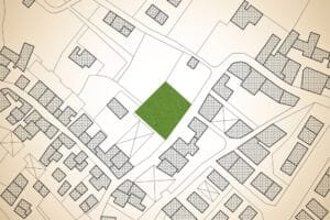 Imaginary cadastral map of territory with a free green land available for building construction. Concept image